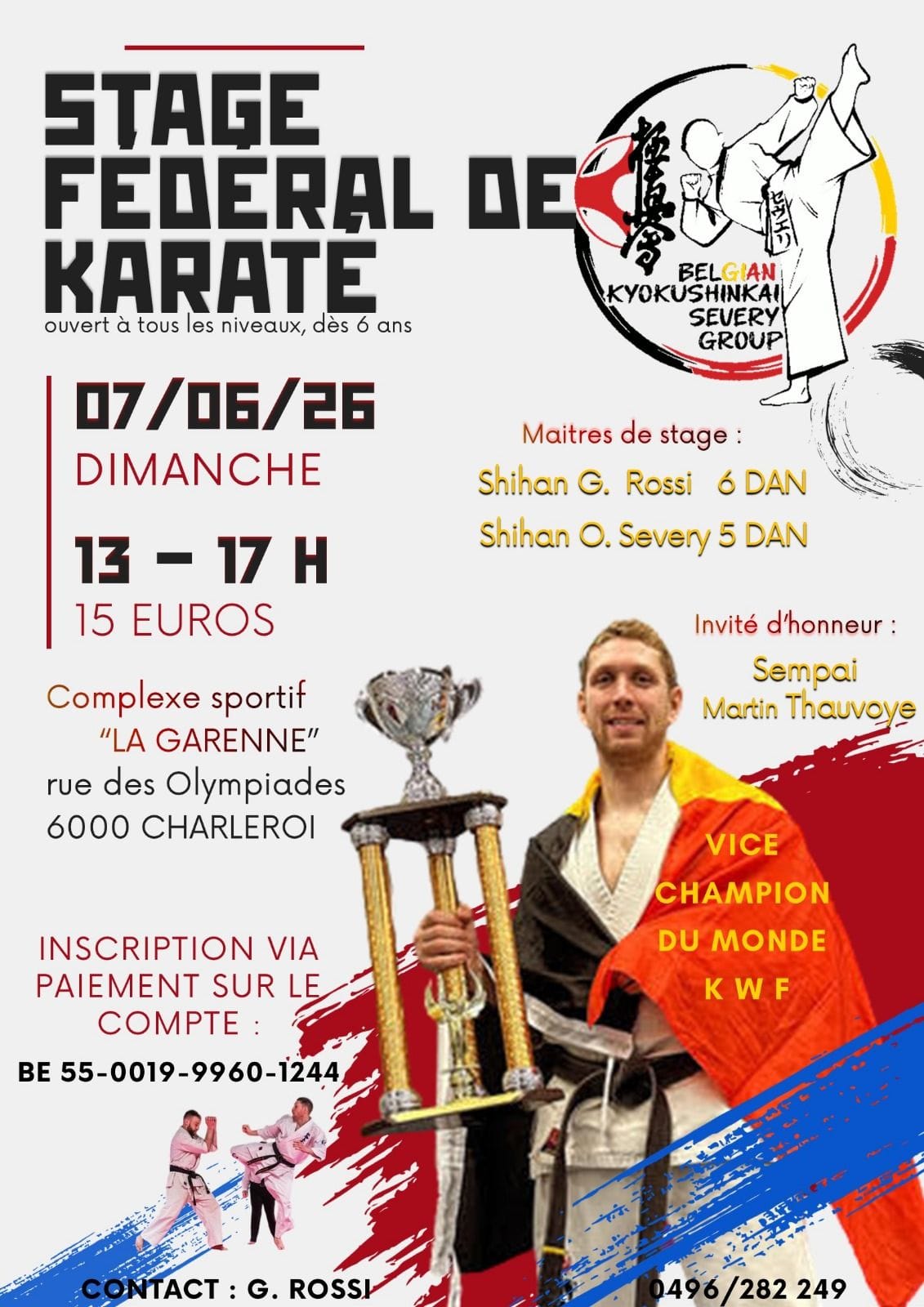 Ce sera un honneur et un plaisir de partager avec vous mon expérience, le stage sera tourné autour de combat et de la progression.